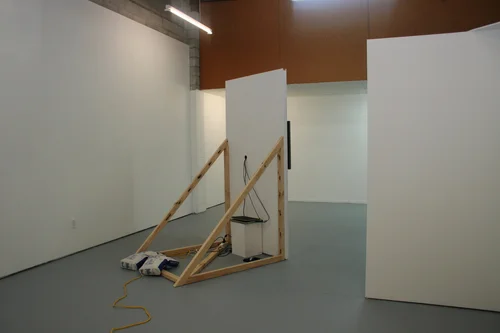 In these works I reclaim gestural use of paint, and combine two key concerns present in my process based work; the vulnerability of separate objects as they hold their own in space, real or imagined, and the unstable nature of perceptual space itself. Inheriting, in terms of gesture, a somewhat perfunctory feel from the process driven work, these works 'figure' and 'ground' are teased away from their respective functions - figures dissolve, flatten, and slip behind their grounds; stretched thinly they become grounds themselves. Grounds disintegrate, float free as new figures, or re-establish themselves within figures. The two roles become transmutable; the relationship becomes precarious.