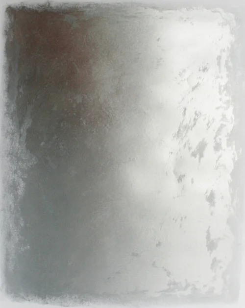 In this series of paintings, the utilitarian gesture of undercoating, in this case with a transparent 'binder', is detected at a crucial moment in its drying process. Through brushings of dry pigment, like dusting for fingerprints or hidden evidence, inconsistencies and randomness within an apparently pure surface are revealed.